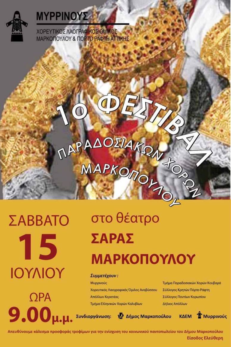 Με πολύ χαρά σας προσκαλούμε στο 1ο ΦΕΣΤΙΒΑΛ ΠΑΡΑΔΟΣΙΑΚΩΝ ΧΟΡΩΝ που διοργανώνουμε το Σάββατο 15 Ιουλίου και ώρα 21:00 στο θέατρο ΣΑΡΑΣ ΜΑΡΚΟΠΟΥΛΟΥ.