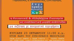 Πρόσκληση σε εκδήλωση για τους συνεταιρισμούς, την Κυριακή 23 Οκτωβρίου