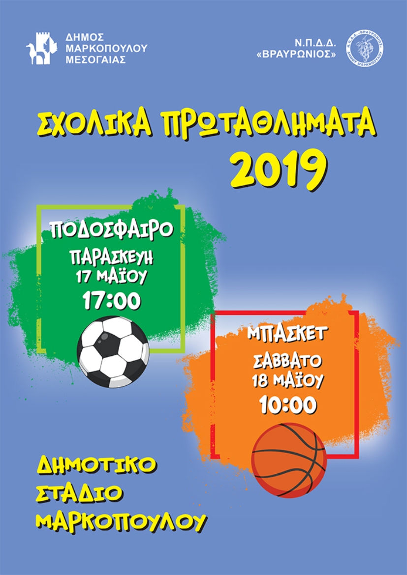 Ο Δήμος Μαρκοπούλου και το Ν.Π.Δ.Δ. «Βραυρώνιος» διοργανώνουν και σας προσκαλούν, στο 7ο Σχολικό Πρωτάθλημα, στις εγκαταστάσεις του Δημοτικού Σταδίου Μαρκοπούλου!
