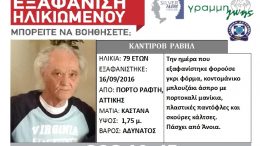 Aγαπητοί φίλοι, Υπάρχει εξαφάνιση ηλικιωμένου από την περιοχή Μπαθίστα του Πόρτο Ράφτη . Εάν γνωρίζετε κάτι επικοινωνήστε με τη ΓΡΑΜΜΗ ΖΩΗΣ, όλο το 24ωρο, στην…