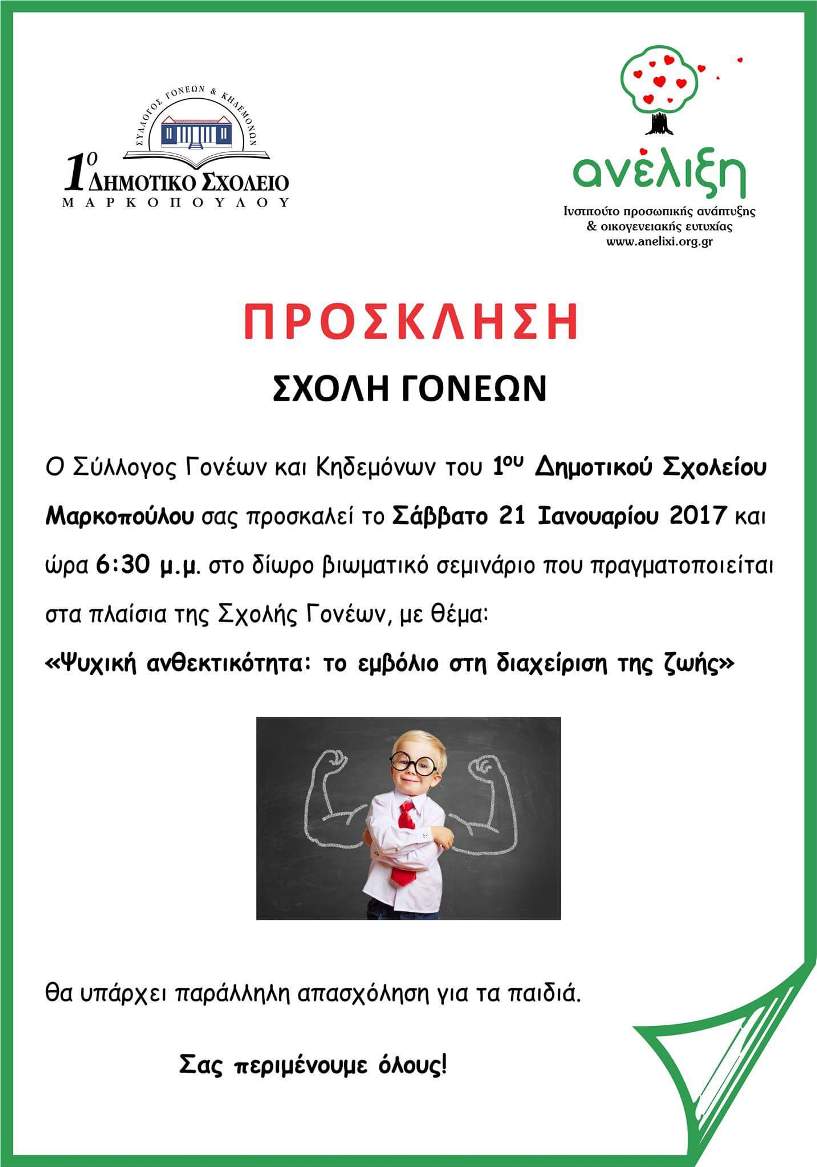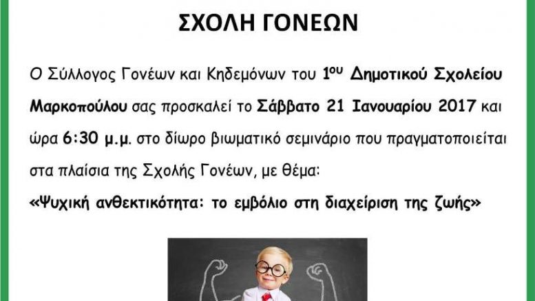 Be the first to comment on "Ενημερωτική εκδήλωση Συλλόγου Γονέων 1ου Δημοτικού Σχολείου Μαρκοπούλου"