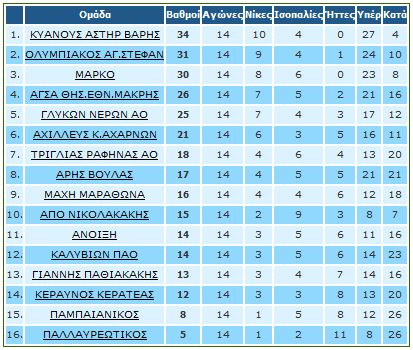 | ΚΑΛΥΒΙΩΝ ΠΑΟ – ΚΥΑΝΟΥΣ ΑΣΤΗΡ ΒΑΡΗΣ | 22/12/18 | 0-0 |