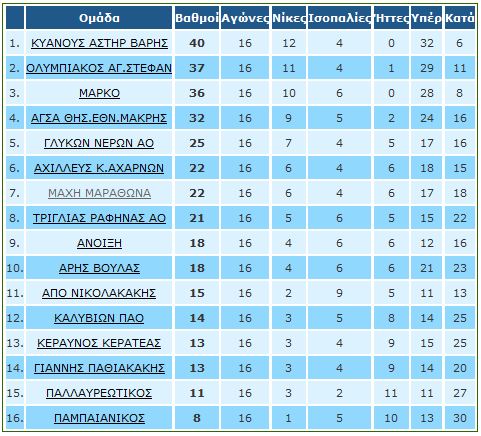 | ΜΑΡΚΟ – ΚΕΡΑΥΝΟΣ ΚΕΡΑΤΕΑΣ | Μαρκόπουλου | 3-0 |