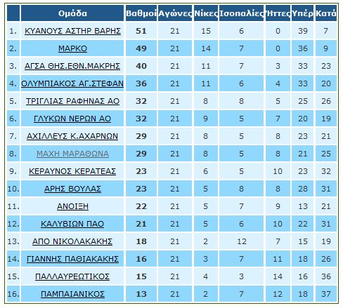 | ΚΥΑΝΟΥΣ ΑΣΤΗΡ ΒΑΡΗΣ – ΑΧΙΛΛΕΥΣ Κ.ΑΧΑΡΝΩΝ | 0-0 |