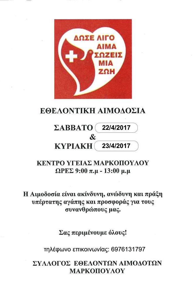Be the first to comment on "Εθελοντική Αιμοδοσία στο Μαρκόπουλο 22-23/4/2017"