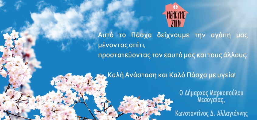 Be the first to comment on "Ευχές Δημάρχου Μαρκοπούλου Μεσογαίας, ενόψει της εορτής του Πάσχα"