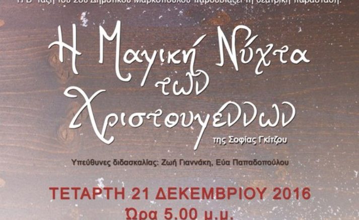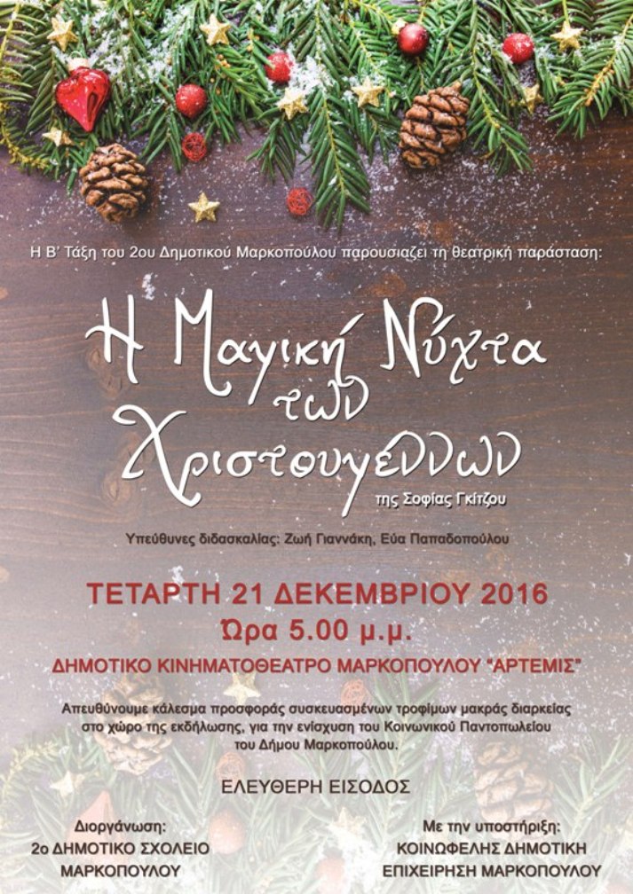 Be the first to comment on "Θεατρική παράσταση Β΄ Τάξης 2ου Δημοτικού Σχολείου Μαρκοπούλου: Η Μαγική Νύχτα των Χριστουγέννων"