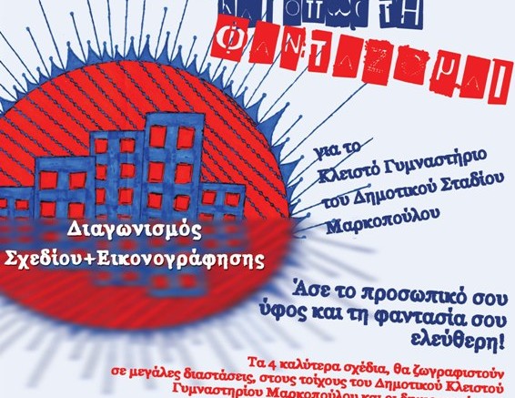 Με αφορμή την ανάπλαση του χώρου του Κλειστού Γυμναστηρίου του Δημοτικού Σταδίου Μαρκοπούλου, ο Δήμος Μαρκοπούλου και το Ν.Π.Δ.Δ. «Βραυρώνιος» προκηρύσσουν Διαγωνισμό Σχεδίου – Εικονογράφησης με τίτλο: «Η Πόλη μου! Όπως τη θέλω και όπως τη φαντάζομαι!», για τους μαθητές Γυμνασίου και Λυκείου του Δήμου, με στόχο τα τέσσερα (4) καλύτερα σχέδια, να ζωγραφιστούν σε μεγάλες διαστάσεις στους τοίχους του Κλειστού Γυμναστηρίου.