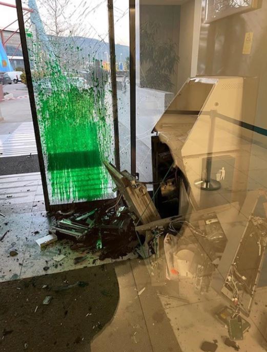 Αφού ανατίναξαν το μηχάνημα το οποίο βρίσκεται σε στεγασμένο χώρο εταιρίας, συνειδητοποίησαν ότι όχι μόνο θα φύγουν άπραγοι, αλλά και ότι οι κασετίνες με τα χρήματα ήταν παγιδευμένες με ειδικό πράσινο χρώμα το οποίο έσκασε και ξεχύθηκε παντού, βάφοντας τα χαρτονομίσματα αλλά και τους ίδιους.