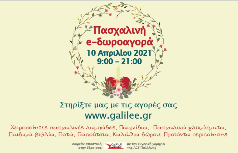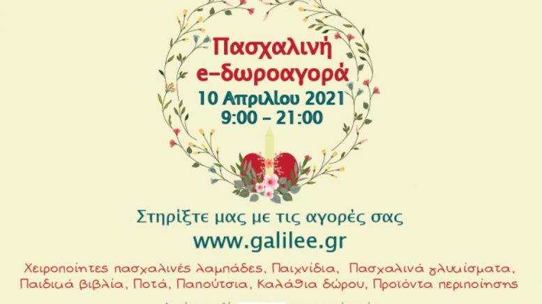 Η Μ.Α.Φ. «ΓΑΛΙΛΑΙΑ» διοργανώνει Πασχαλινή ψηφιακή Δωροαγορά το Σάββατο, 10 Απριλίου, 9:00-21:00, στην ιστοσελίδα της https://galilee.gr/.