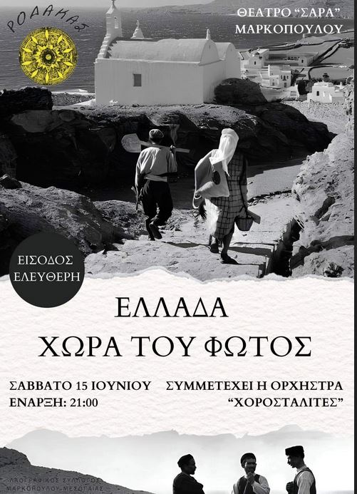 Ο Δήμος Μαρκοπούλου Μεσογαίας σας προσκαλεί το Σάββατο 15 Ιουνίου 2024 και ώρα 21:00, στο Ανοιχτό Θέατρο Σάρα Μαρκοπούλου, στην ετήσια καλοκαιρινή παράσταση του Λαογραφικού Συλλόγου Μαρκοπούλου Μεσογαίας «ΡΟΔΑΚΑΣ».