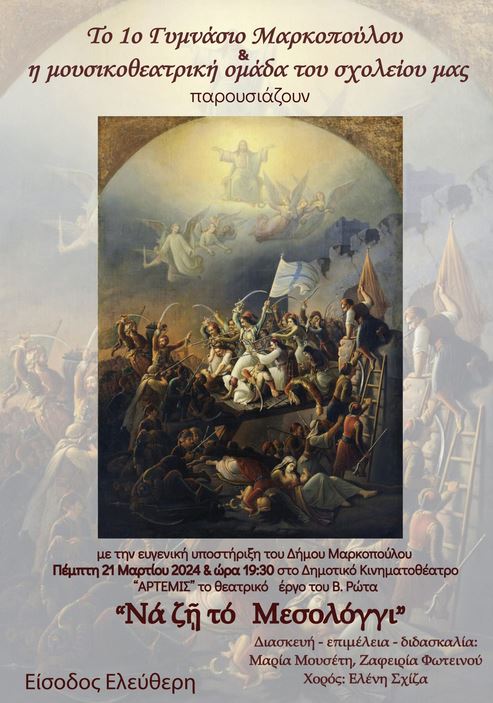 Μουσικοθεατρική παράσταση “Νά ζῇ τό Μεσολόγγι” από το 1ο Γυμνάσιο Μαρκοπούλου