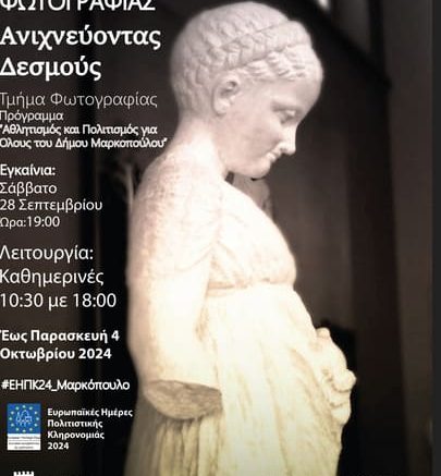 Ο Δήμος Μαρκοπούλου συμμετέχει στο φετινό Εορτασμό των «Ευρωπαϊκών Ημερών Πολιτιστικής Κληρονομιάς (ΕΗΠΚ) 2024» – με τίτλο: Ανιχνεύοντας Διαδρομές, Δίκτυα και Δεσμούς στην Πολιτιστική Κληρονομιά, υπό την ευθύνη της Διεύθυνσης Αρχαιολογικών Μουσείων, Εκθέσεων και Εκπαιδευτικών Προγραμμάτων του ΥΠ.ΠΟ.