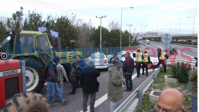 Αγρότες από τα Μεσόγεια, λίγο μετά τις 12:30, ανέβηκαν στα τρακτέρ τους με κατεύθυνση την Αττική Οδό. Βρέθηκαν μέσα στον αυτοκινητόδρομο, στην έξοδο προς Κορωπί, όπου τους περίμενε μπλόκο της αστυνομίας με περιπολικά οχήματα.