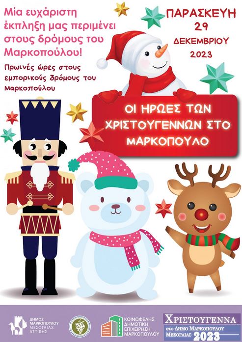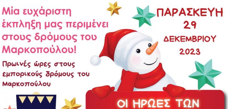 Μία ευχάριστη έκπληξη θα περιμένει τους περαστικούς τις πρωινές ώρες της Παρασκευής 29 Δεκεμβρίου 2023, στους εμπορικούς δρόμους του Μαρκοπούλου!