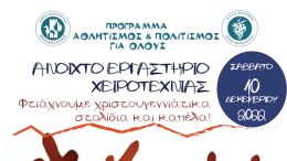 Ο Δήμος Μαρκοπούλου, η Κοινωφελής Δημοτική Επιχείρηση (Κ.Δ.Ε.Μ.) και το Ν.Π.Δ.Δ. «ΒΡΑΥΡΩΝΙΟΣ» σας προσκαλεί στο Χριστουγεννιάτικο Καλλιτεχνικό Παζάρι του Συλλόγου Εικαστικών Μεσογαίας στον Παλαιό Σταθμό…