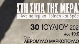 Ο Δήμος Μαρκοπούλου και η Κοινωφελής Δημοτική Επιχείρηση Μαρκοπούλου (Κ.Δ.Ε.Μ.) σας προσκαλούν στην επίκαιρη εκδήλωση – δρώμενο αντιπολεμικής ποίησης και δράσης με τίτλο «Στη σκιά…