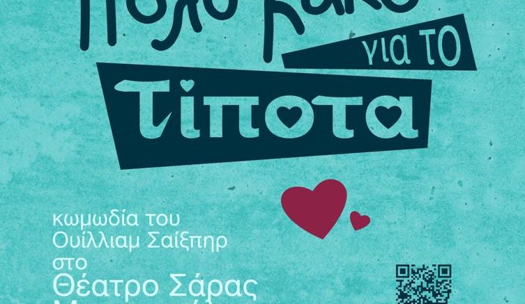 Σάββατο, 27 Αυγούστου 2016 και ώρα 9:00 το βράδυ, η υπέροχη κωμωδία του Σαίξπηρ «Πολύ Κακό για το Τίποτα», από το θέατρο «ΠΕΡΙΑΚΤΟΙ», στο Θέατρο Σάρας Μαρκοπούλου.