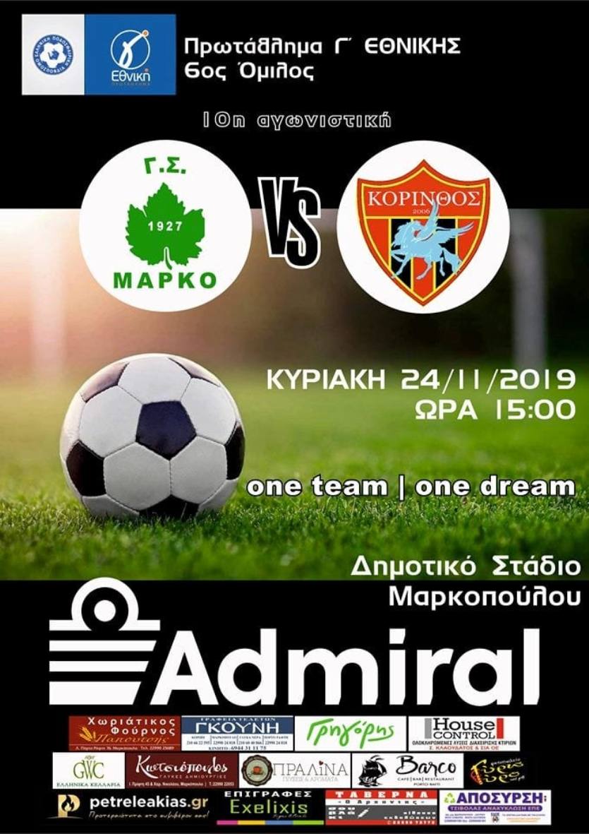 | Κυρ 24 Νοεμ, 2019 – 15:00 | Μαρκό • Κόρινθος | – |