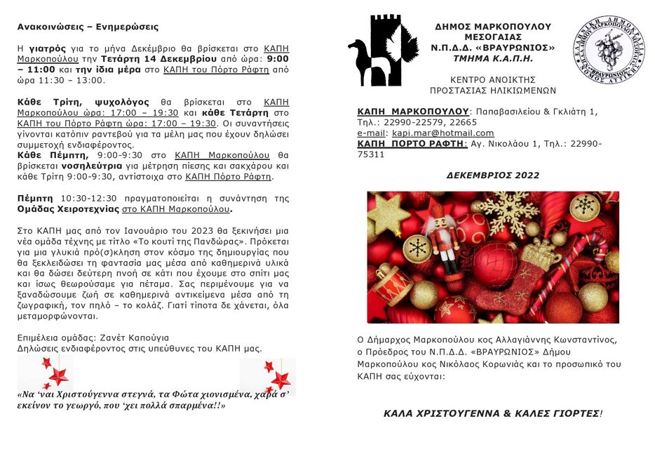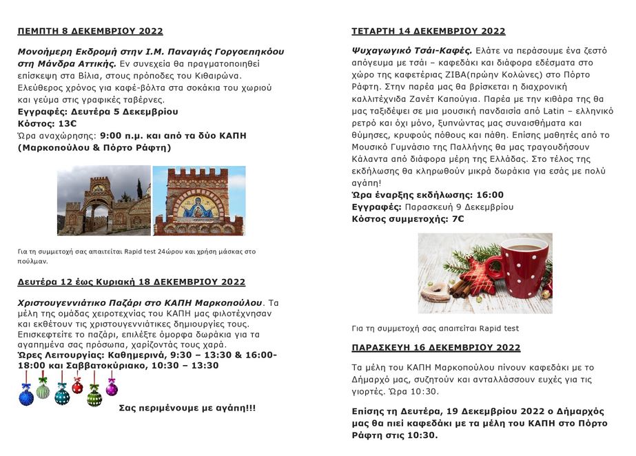 Be the first to comment on "Πρόγραμμα ΚΑΠΗ Δεκεμβρίου 2022"