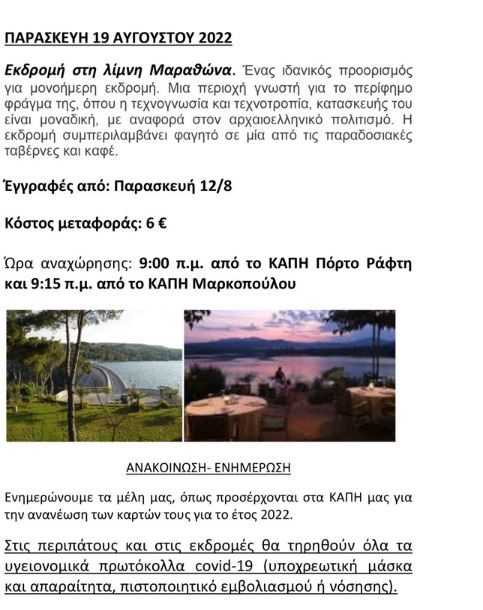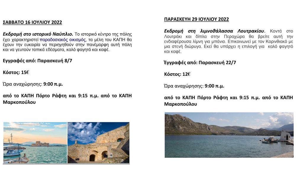 Πρόγραμμα ΚΑΠΗ Δήμου Μαρκοπούλου Ιούλιος – Αύγουστος 2022 1 Ιουλίου 2022 ΚΑΠΗ ΜΑΡΚΟΠΟΥΛΟΥ: Παπαβασιλείου & Γκλιάτη 1, Τηλ.: 22990-22579, 22665 e-mail: kapi.mar@hotmail.com ΚΑΠΗ ΠΟΡΤΟ ΡΑΦΤΗ: Αγ. Νικολάου 1, Τηλ./ Φαξ: 22990-75311