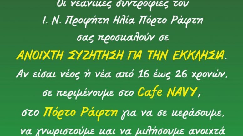 Ανοιχτή Συζήτηση για την Εκκλησία από τις νεανικές συντροφιές του Ι. Ν. Προφήτη Ηλία Πόρτο Ράφτη
